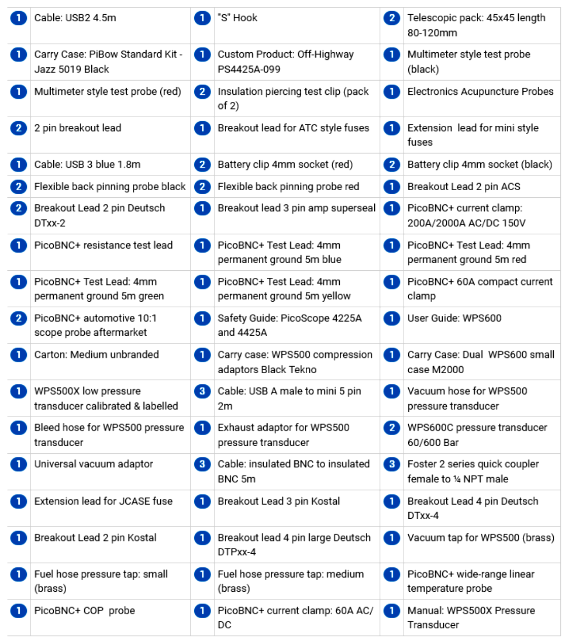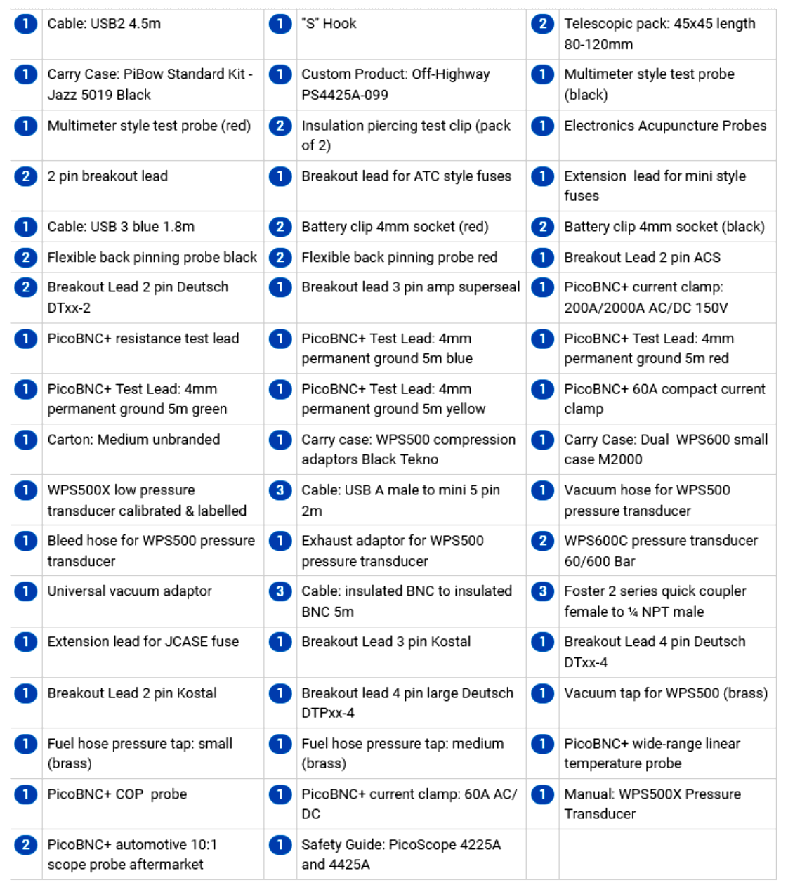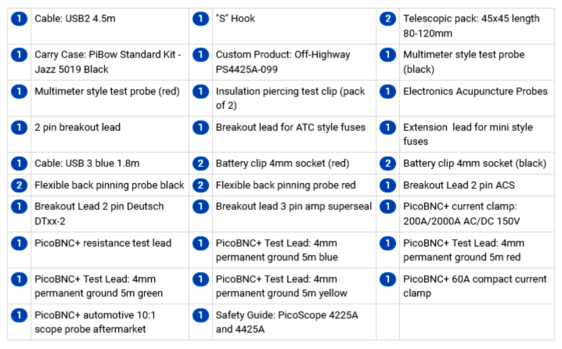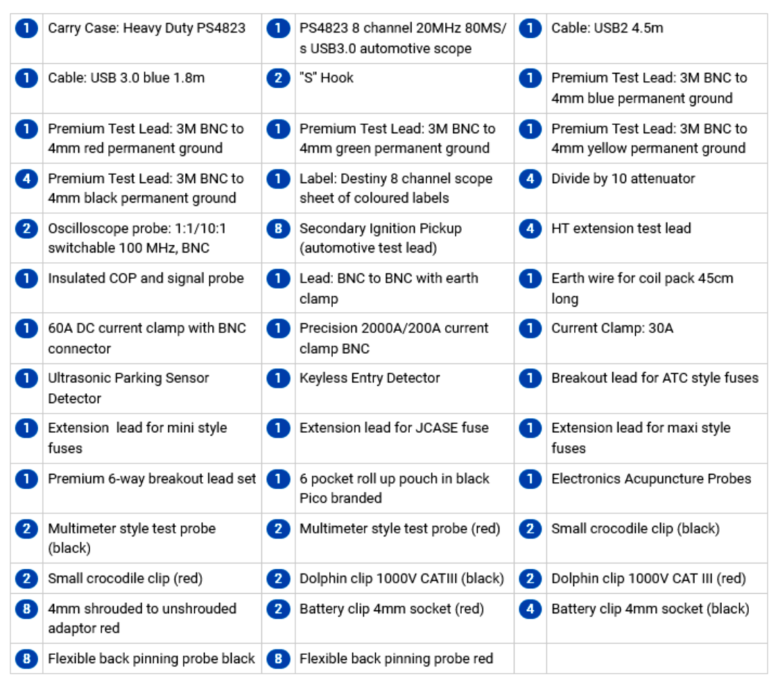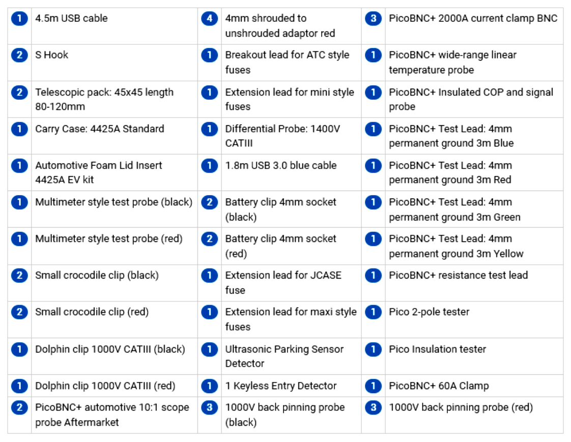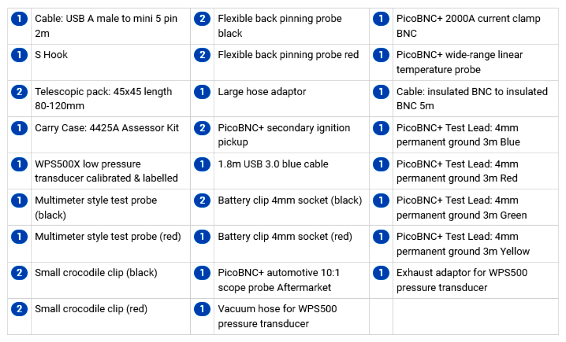 PicoScope 4425A PicoScope 4823 Automotive Kits PicoDiagnostics NVH Kits Comparision Chart Automotive Accessories